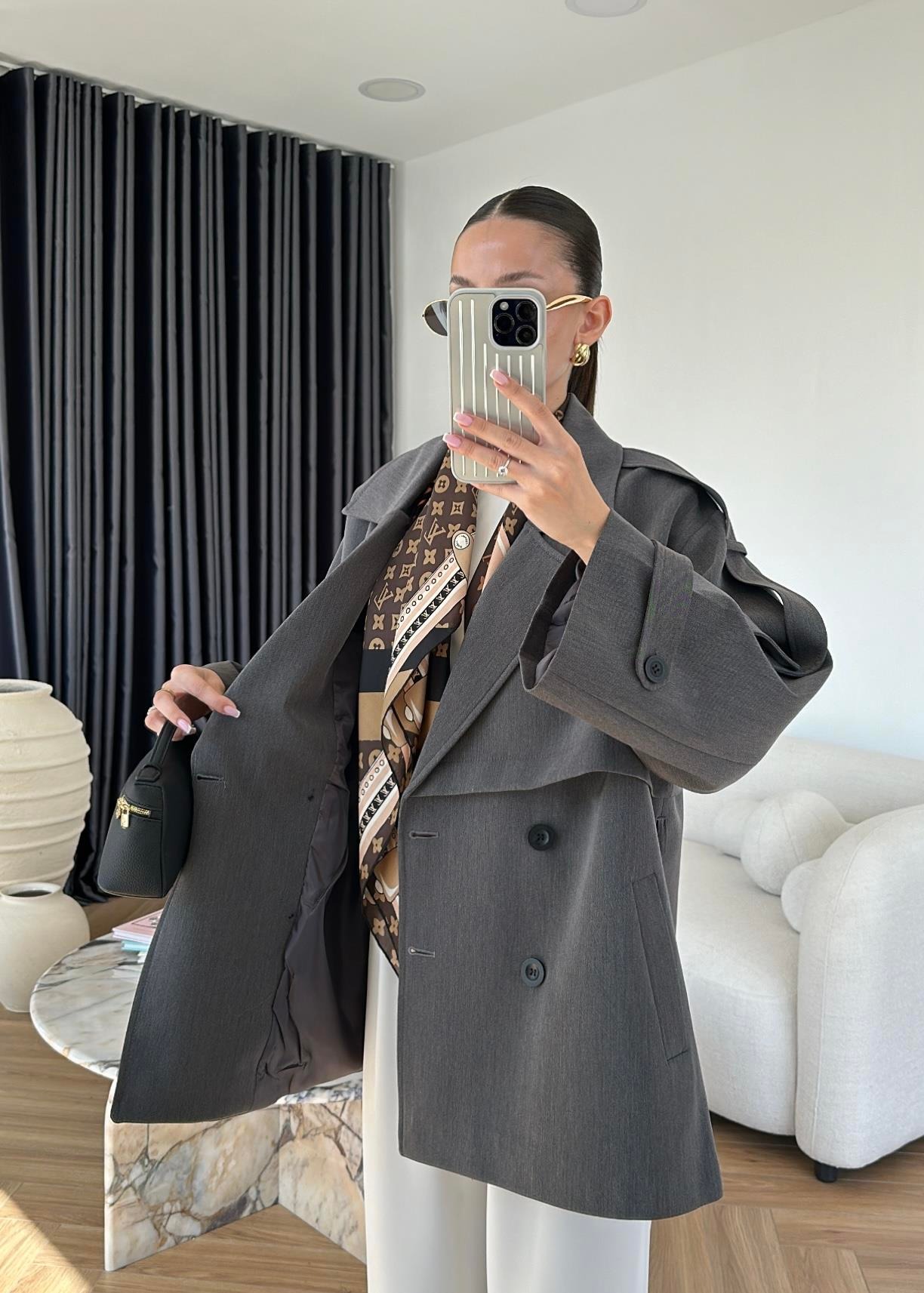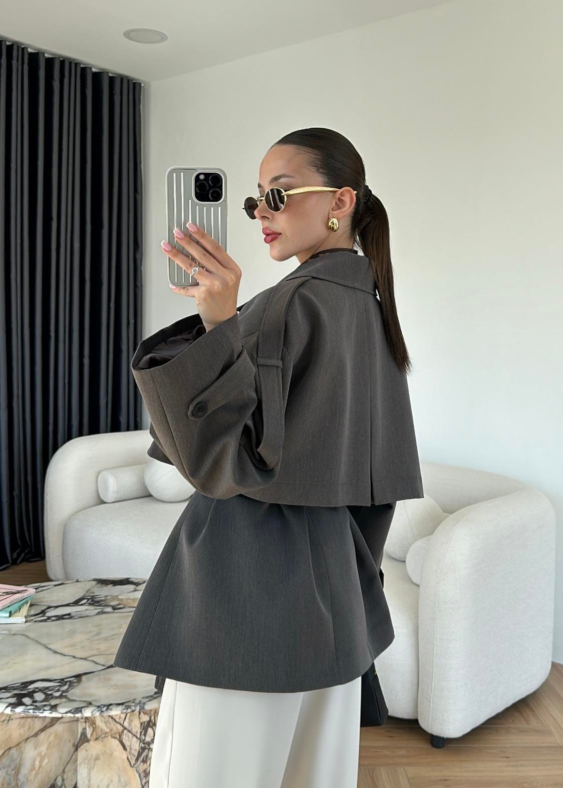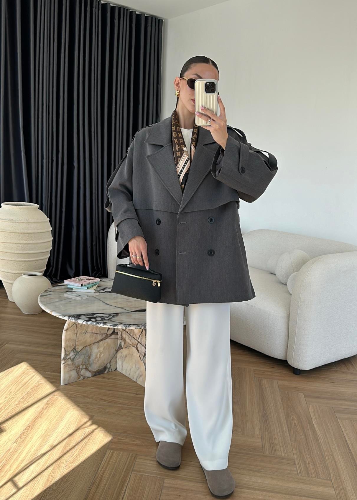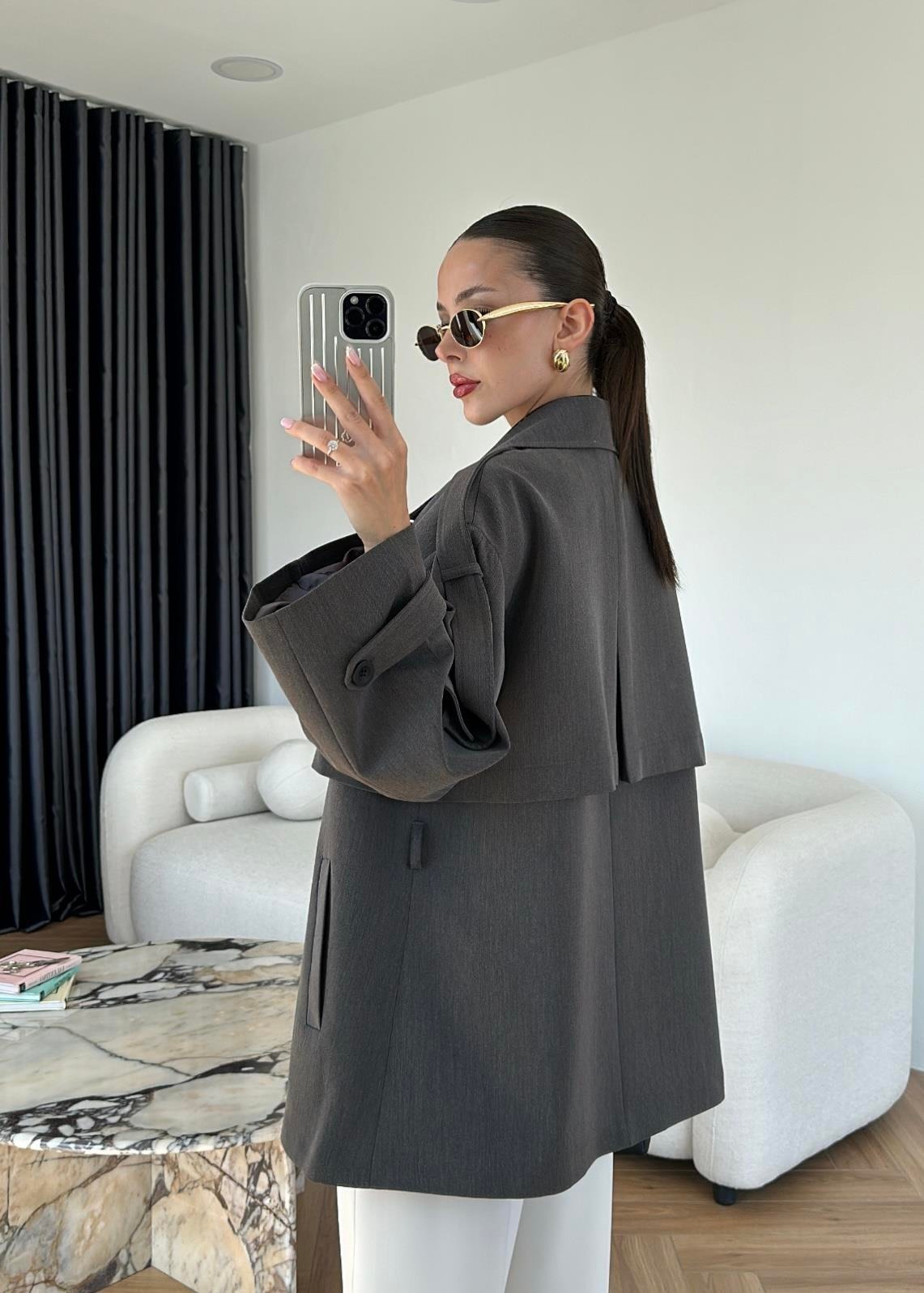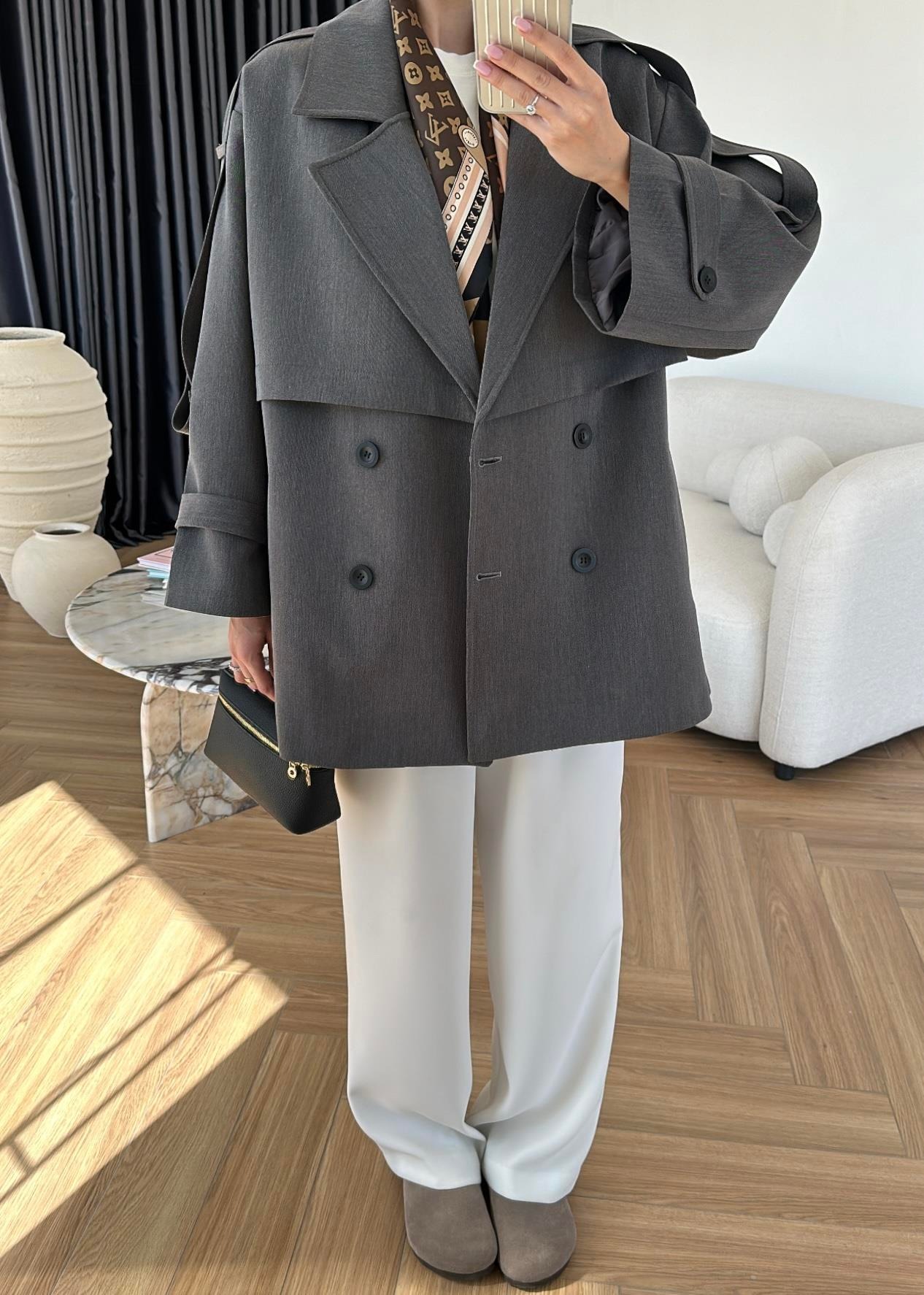 Rüzgarlıklı Ara Boy Trençkot ANTRASİT