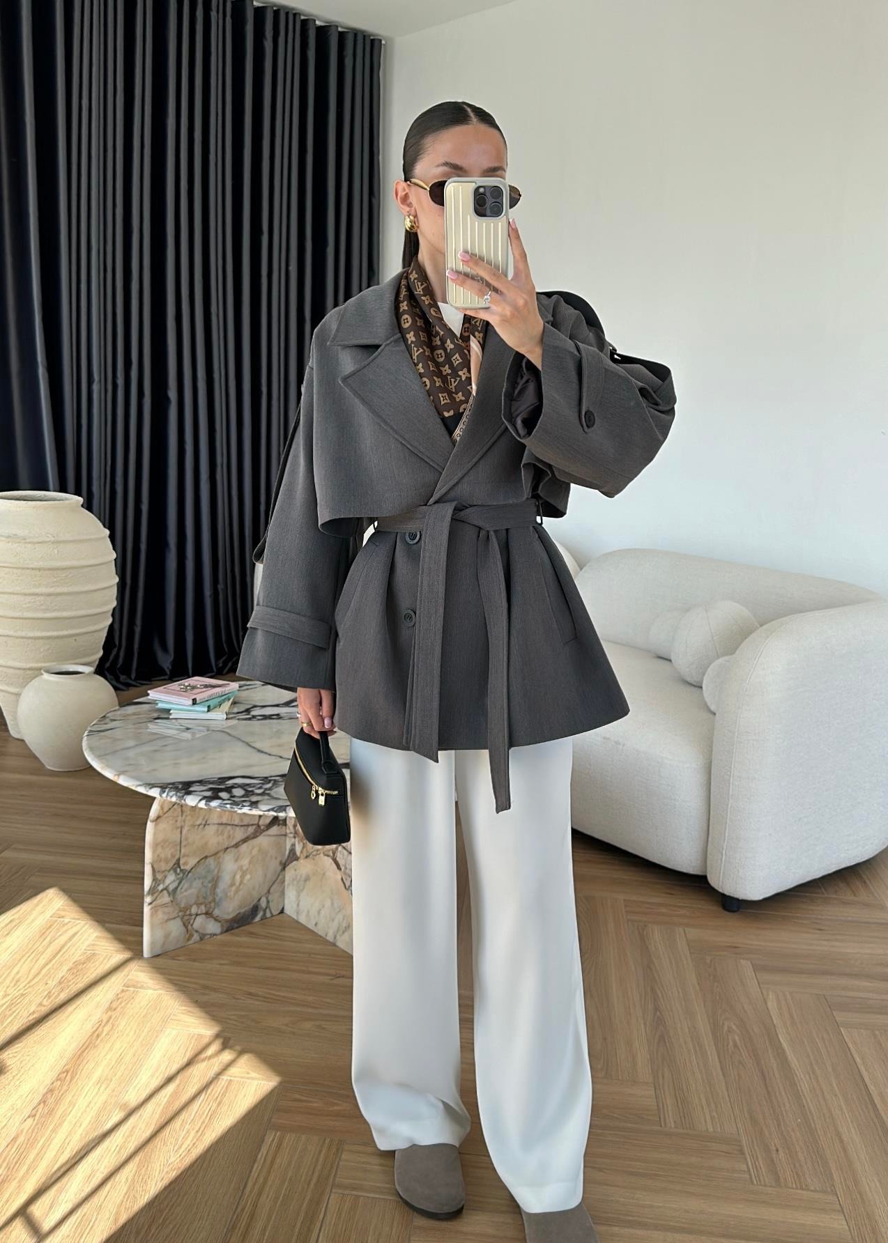 Çekimde S Beden kullanılmıştır,Astarlı kuşaklı ve ceplidir.