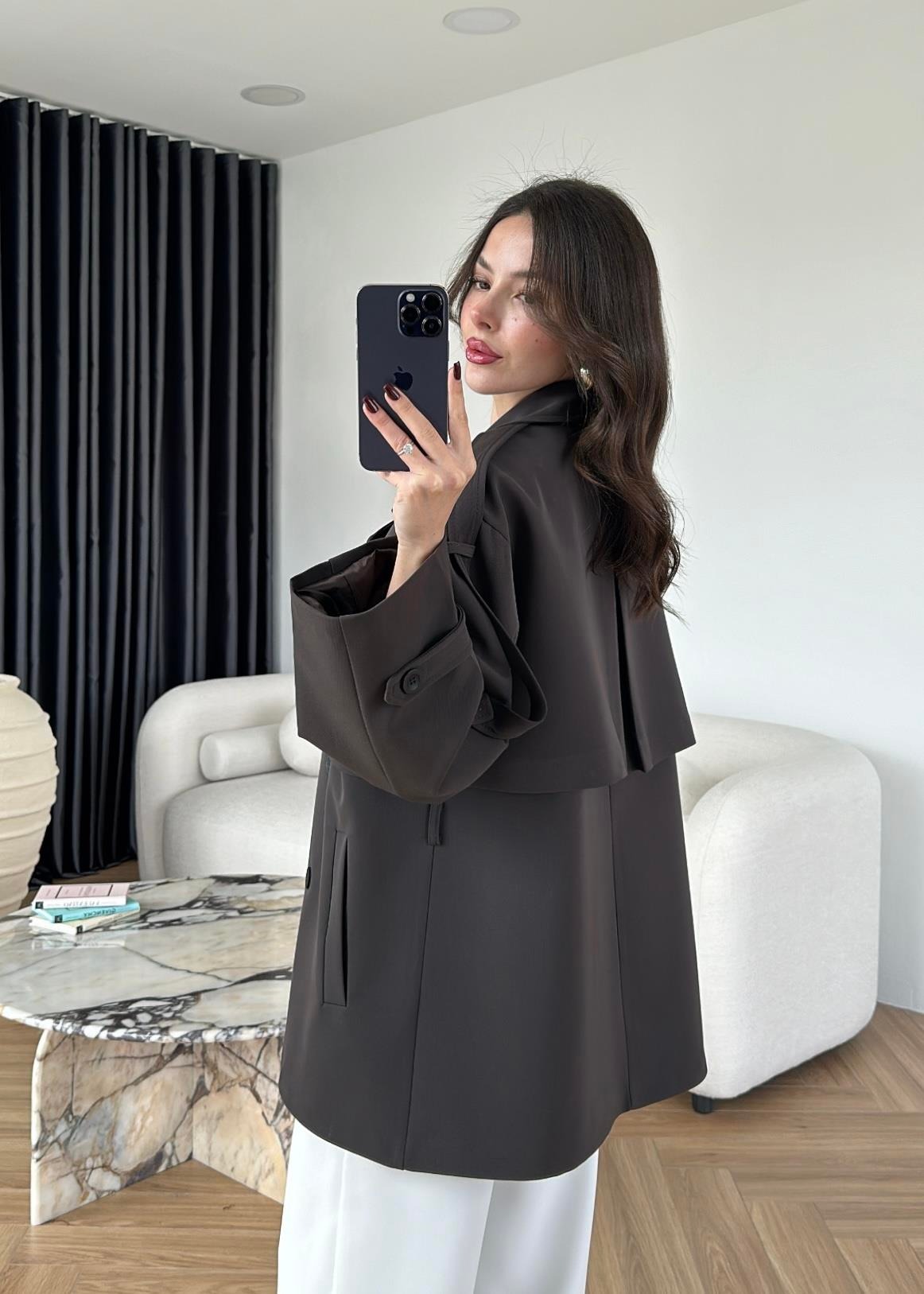 Çekimde S Beden kullanılmıştır,Astarlı kuşaklı ve ceplidir.