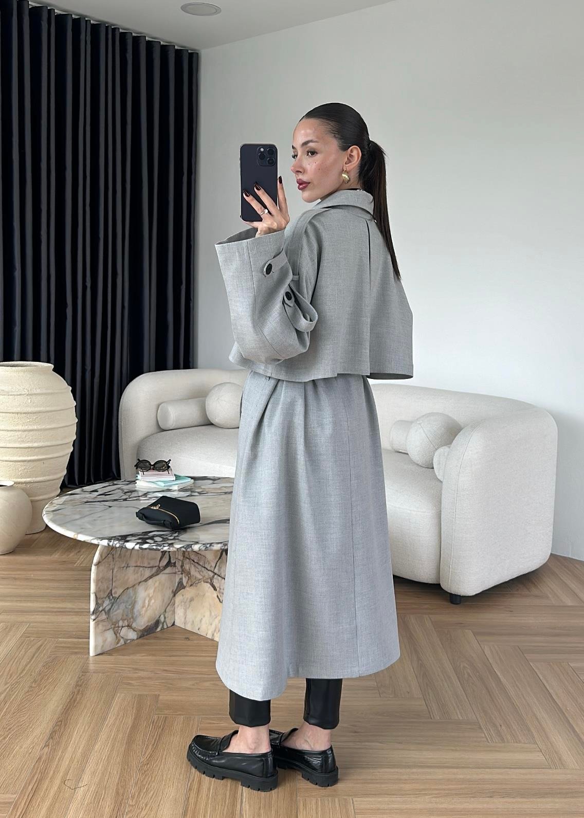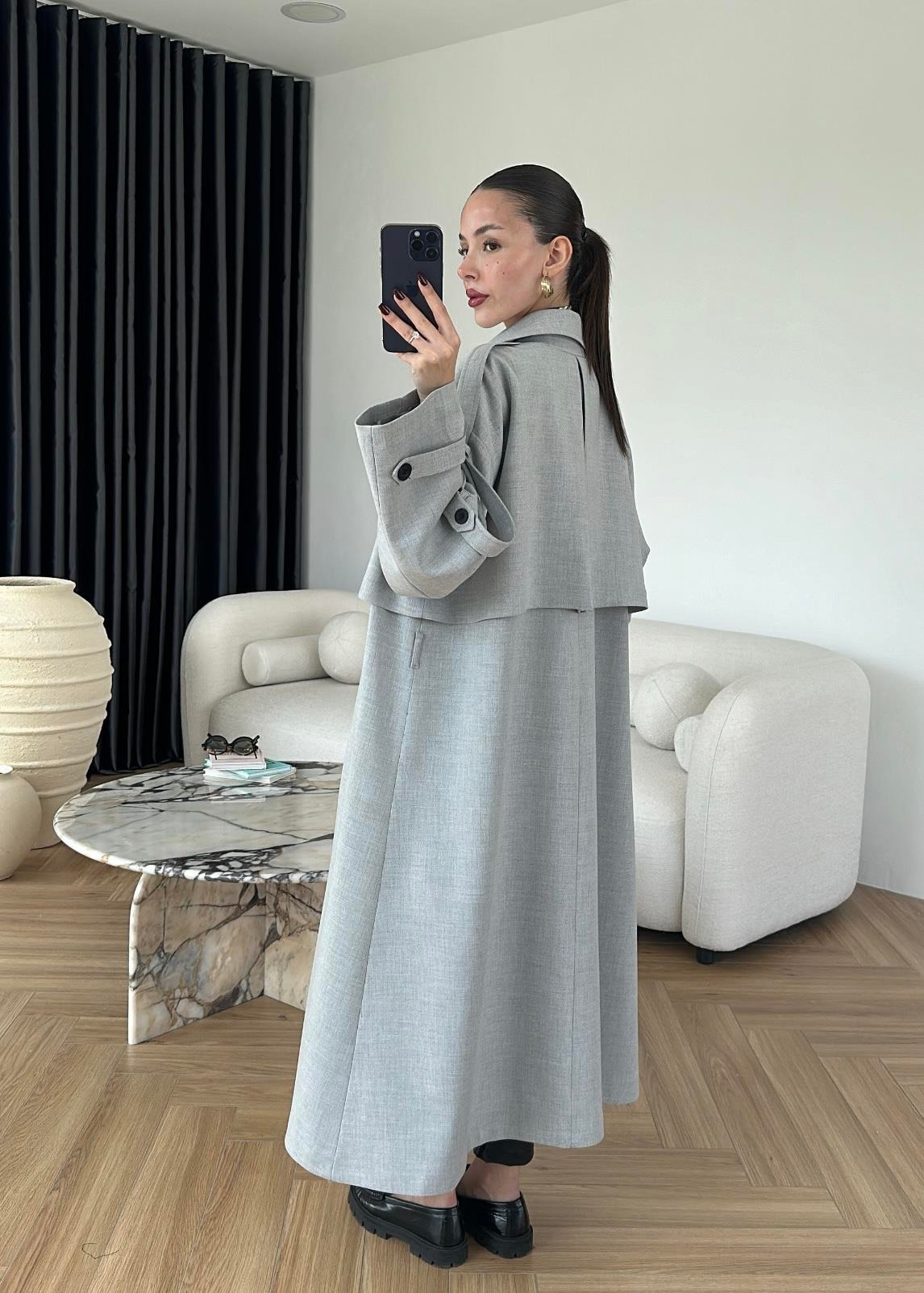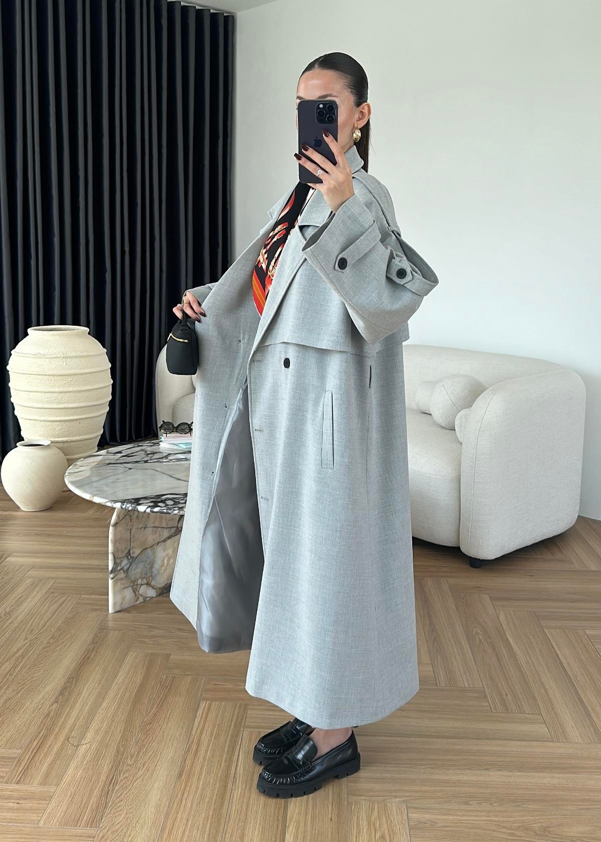 Omuzu Uzun Apoletli Trençkot AÇIK GRİ