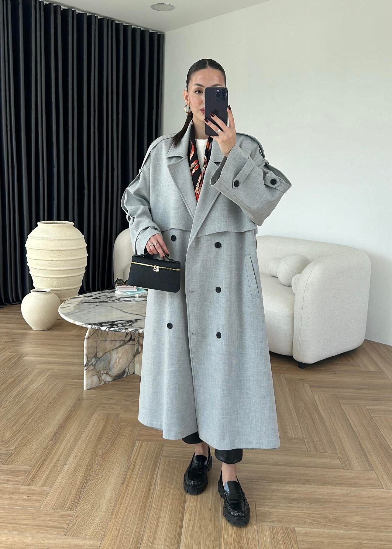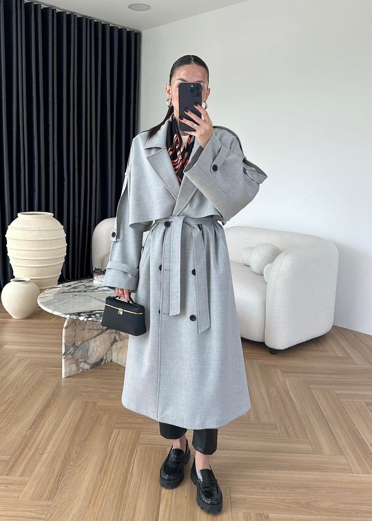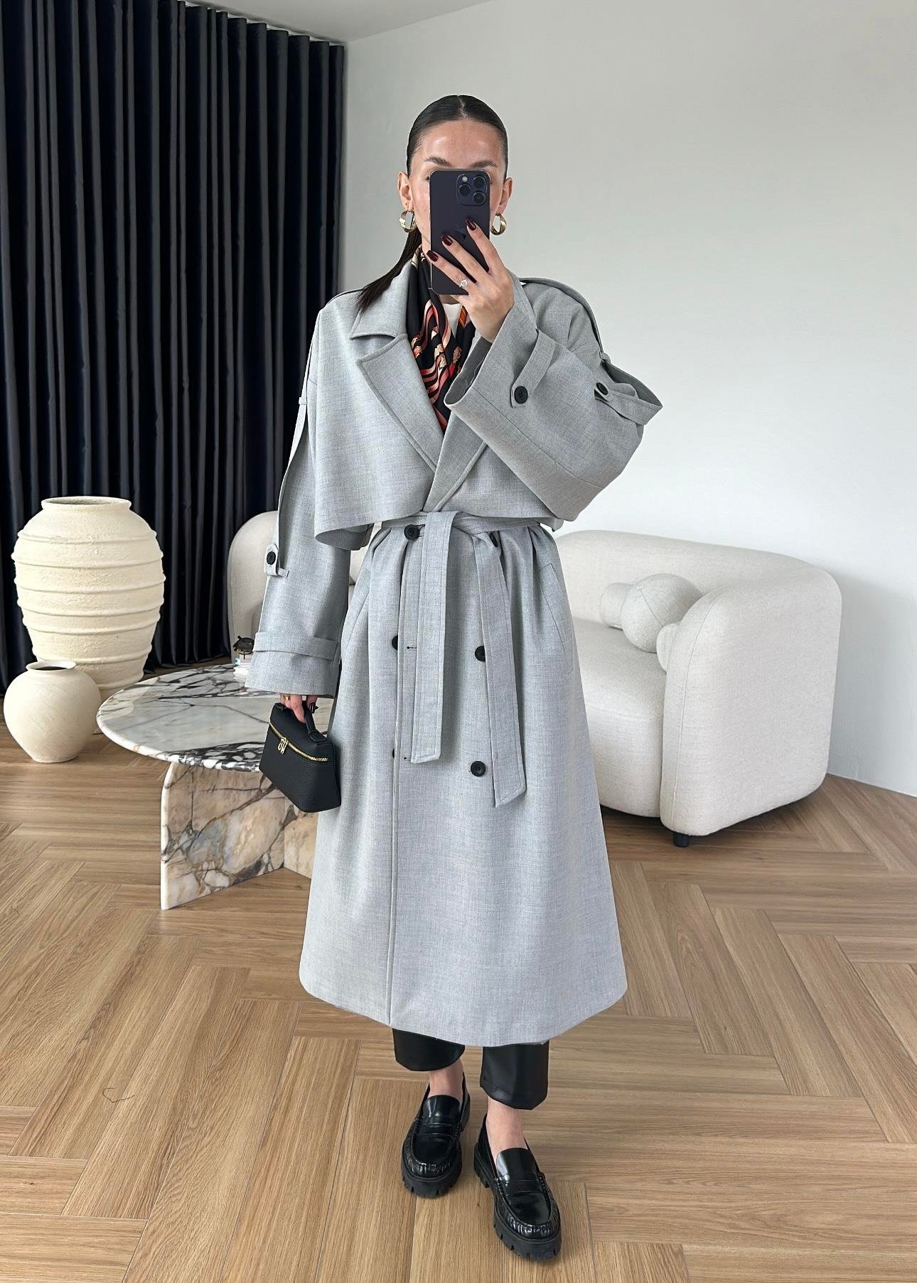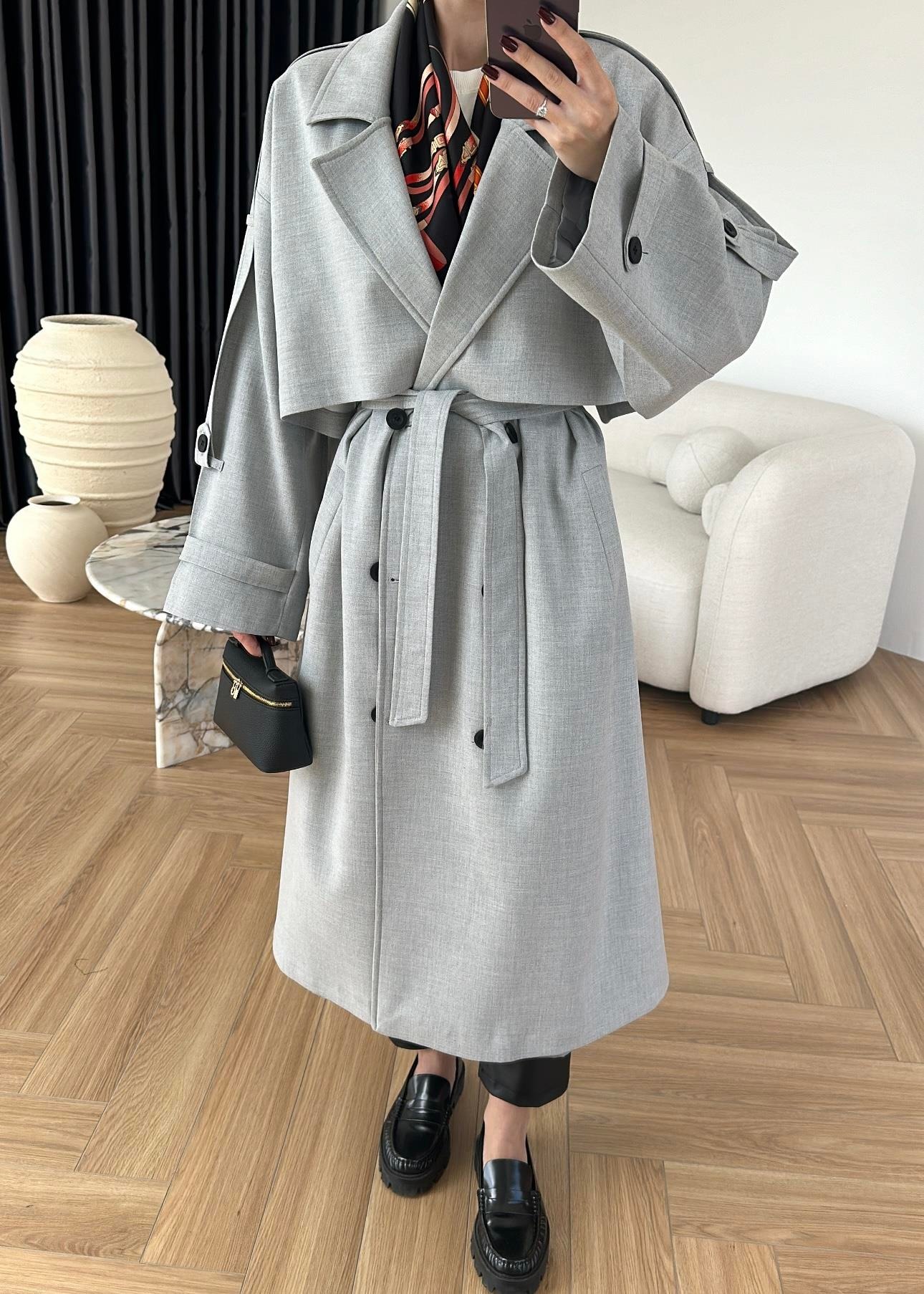 Omuzu Uzun Apoletli Trençkot AÇIK GRİ