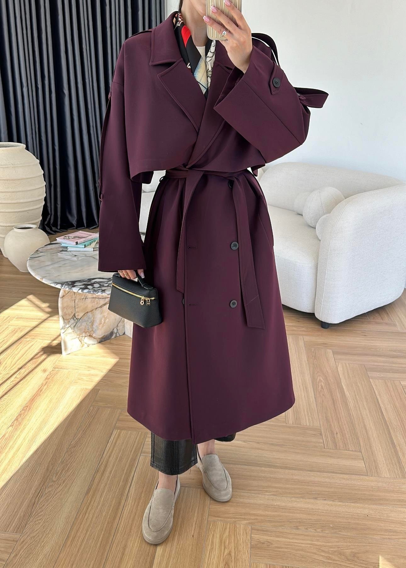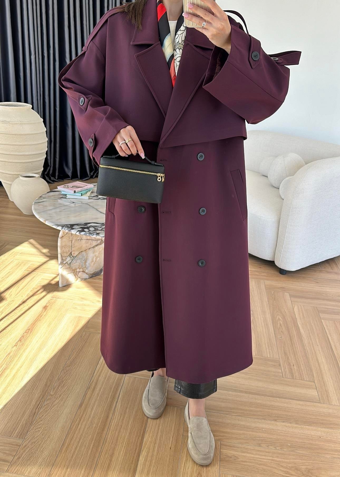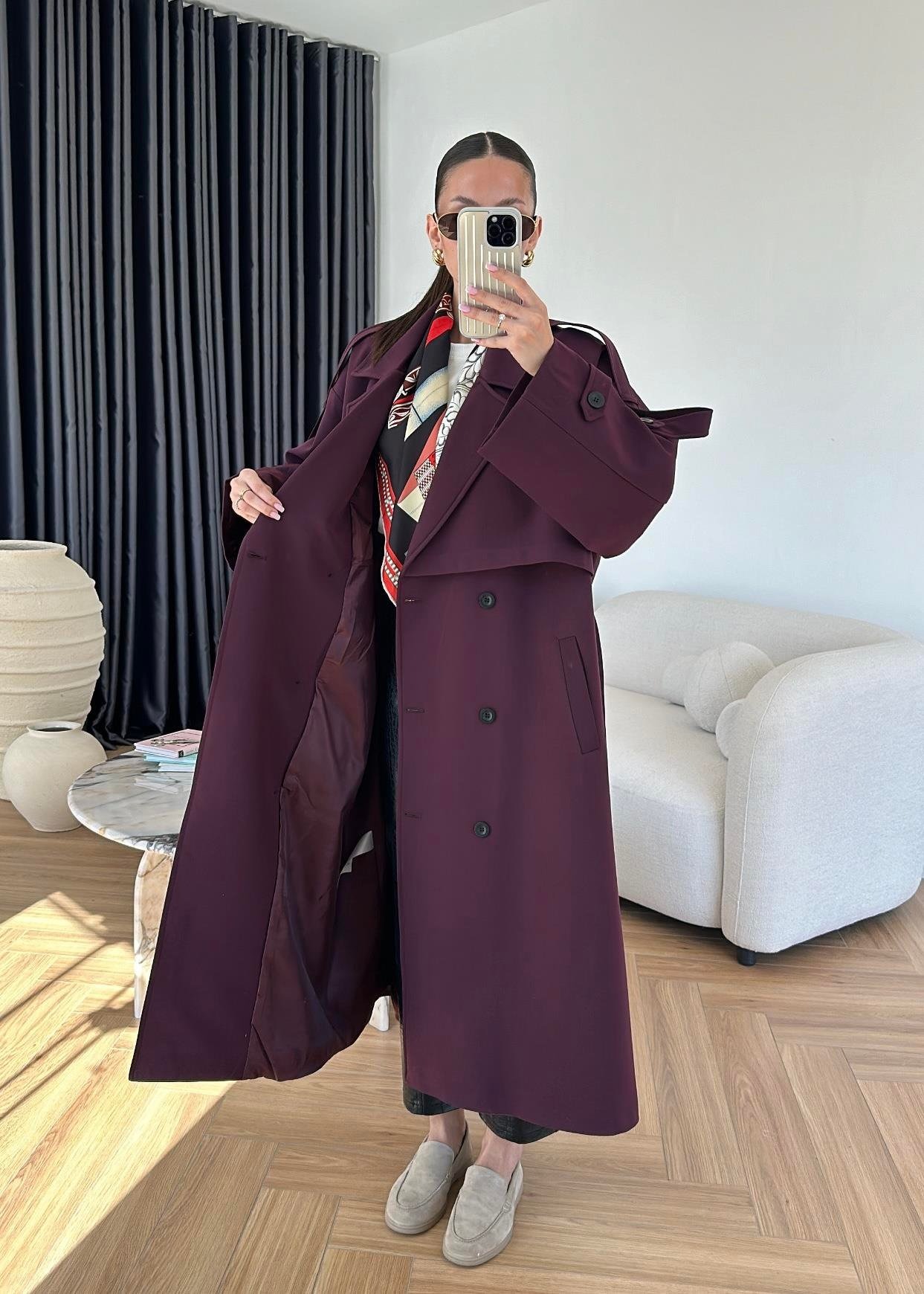 Omuzu Uzun Apoletli Trençkot MÜRDÜM