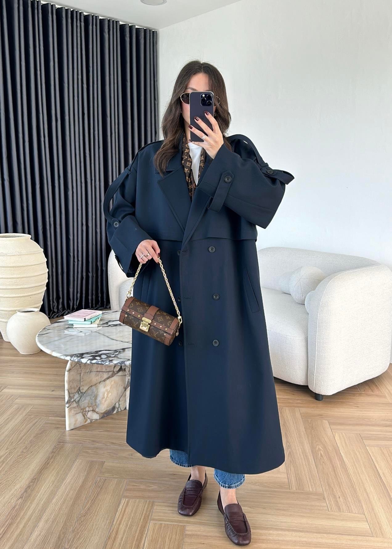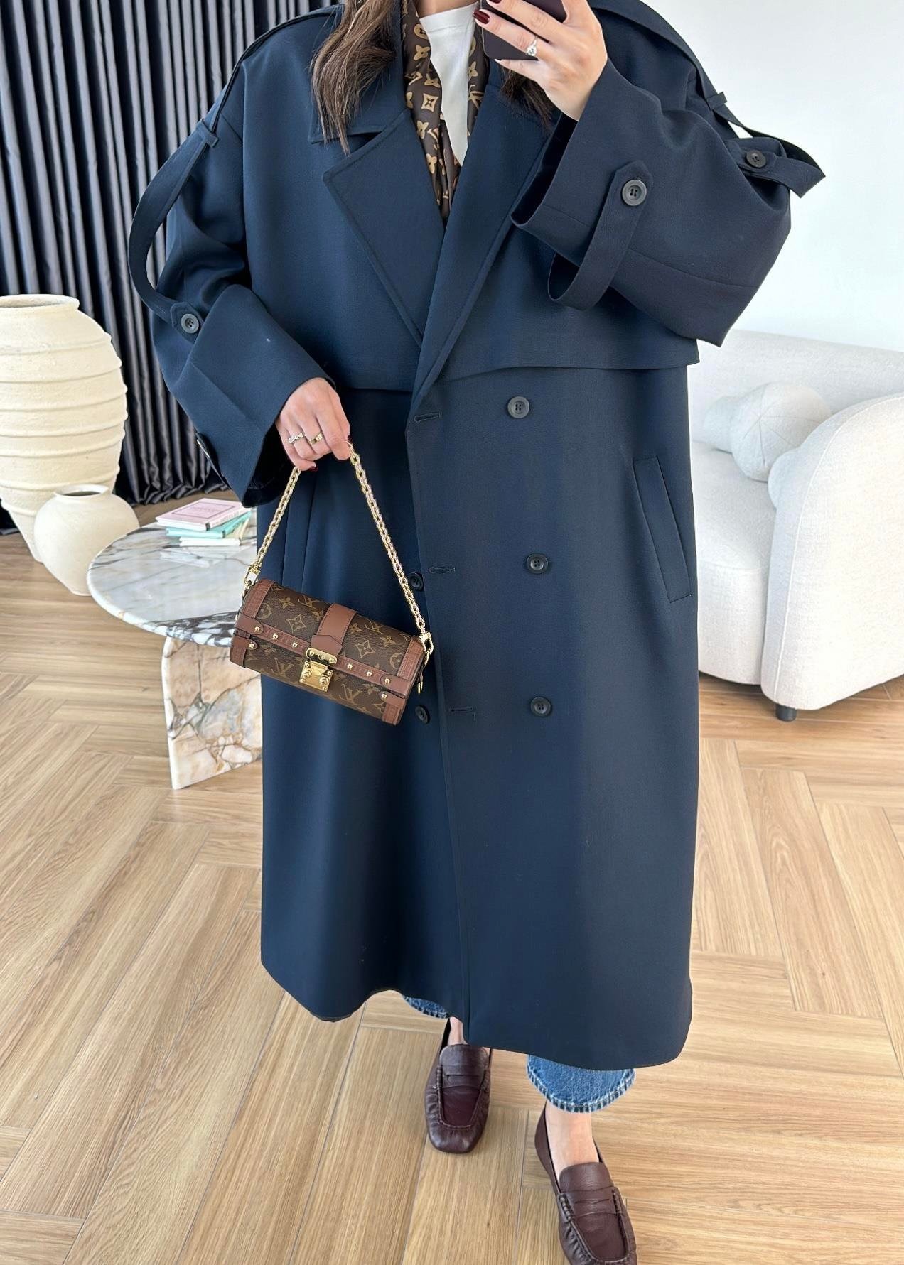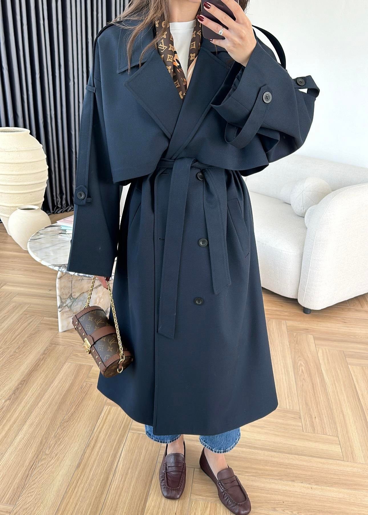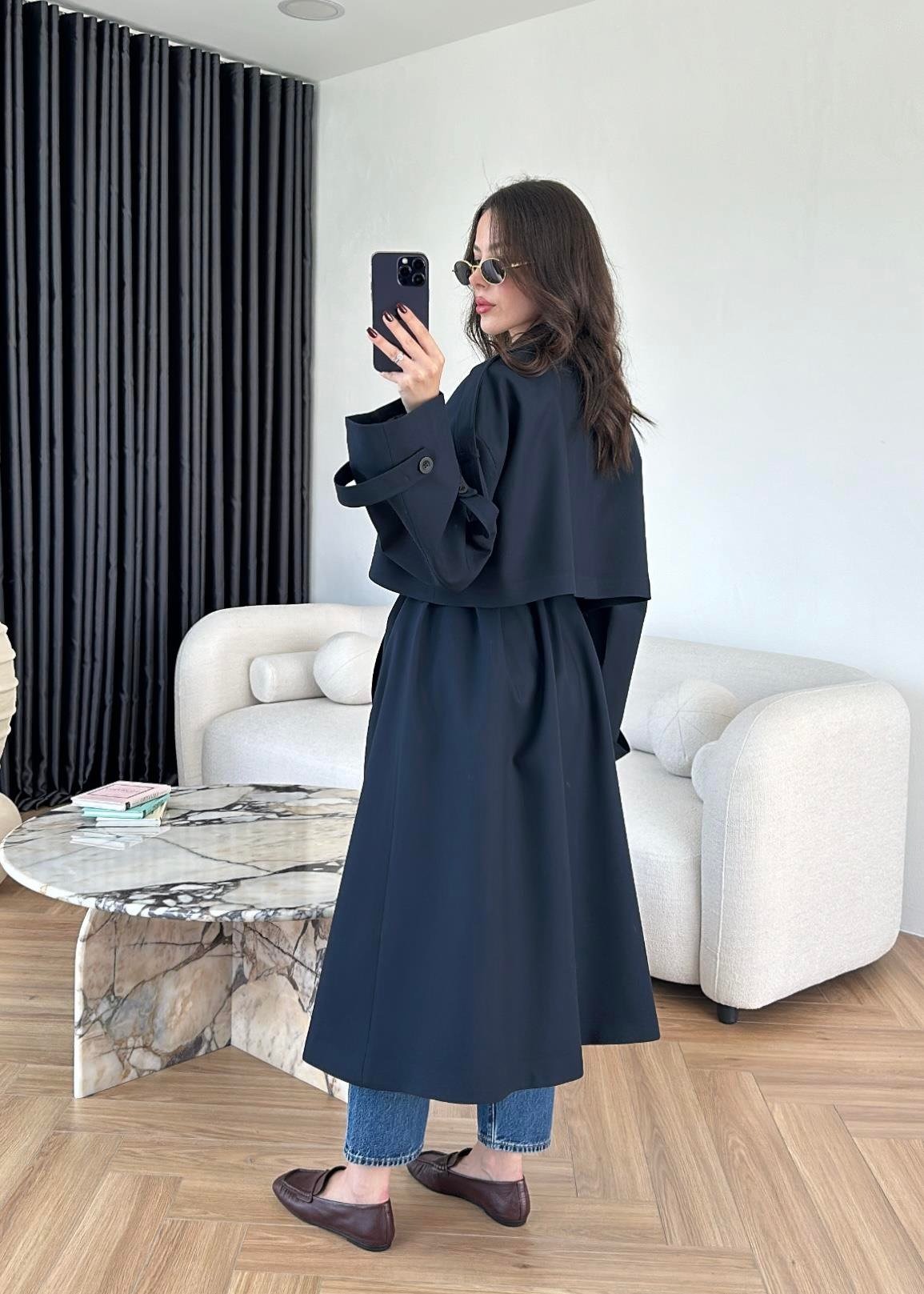 Omuzu Uzun Apoletli Trençkot LACİVERT