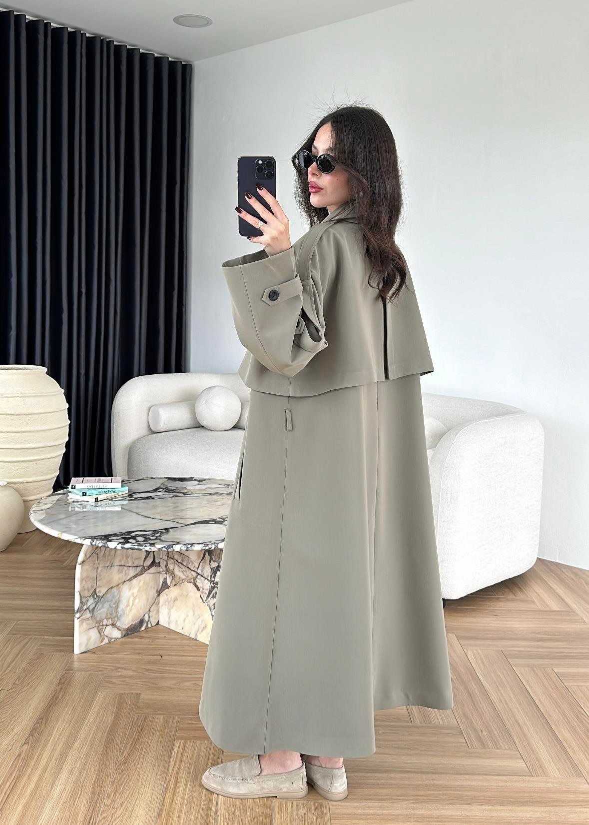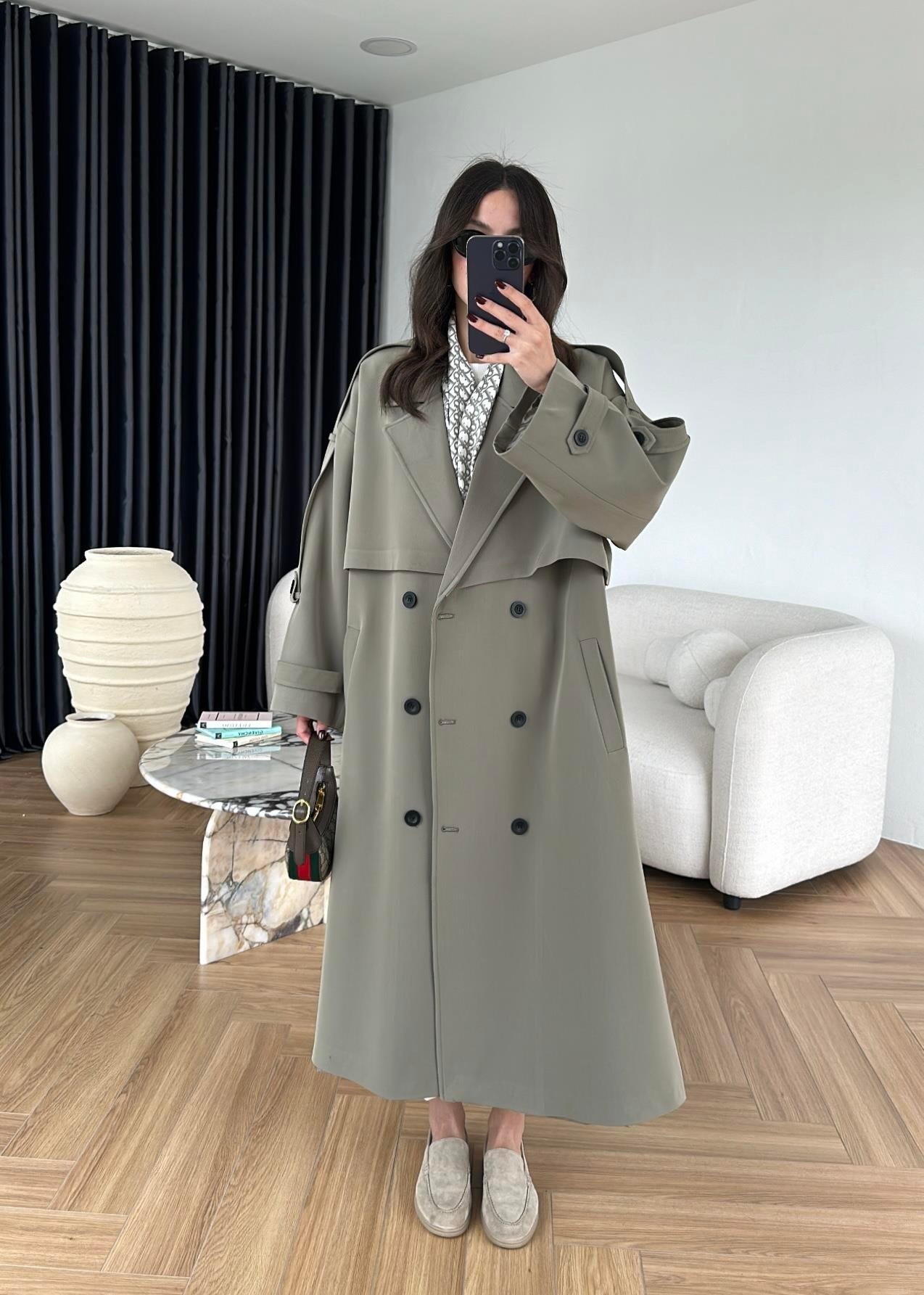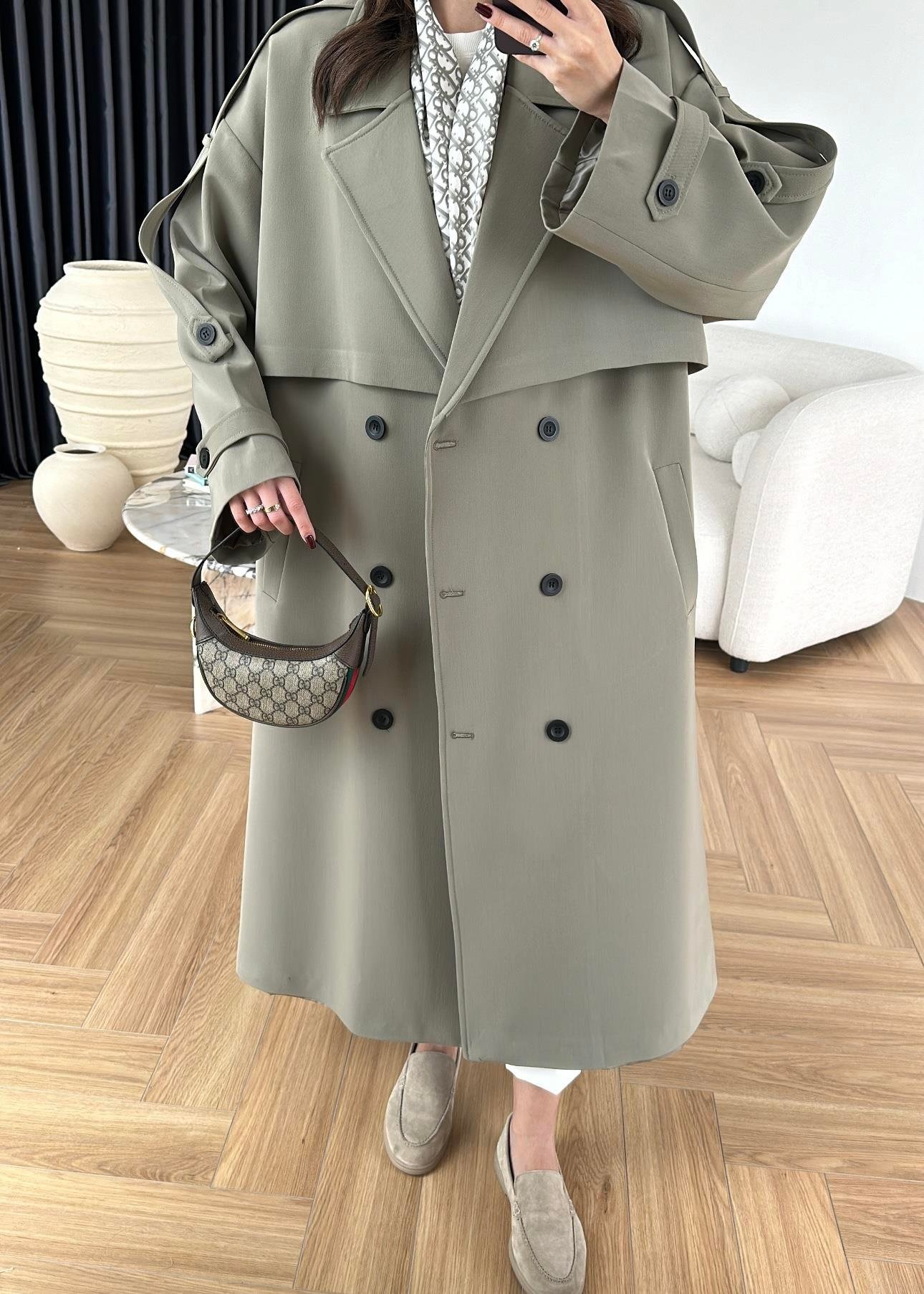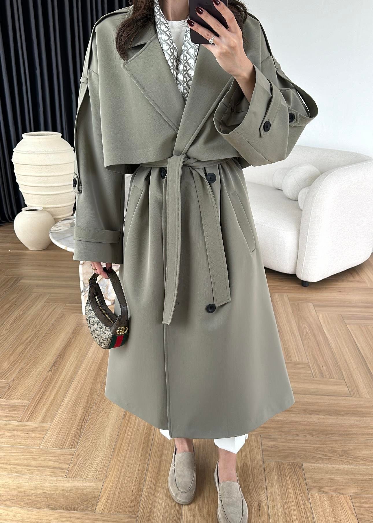 Omuzu Uzun Apoletli Trençkot HAKİ