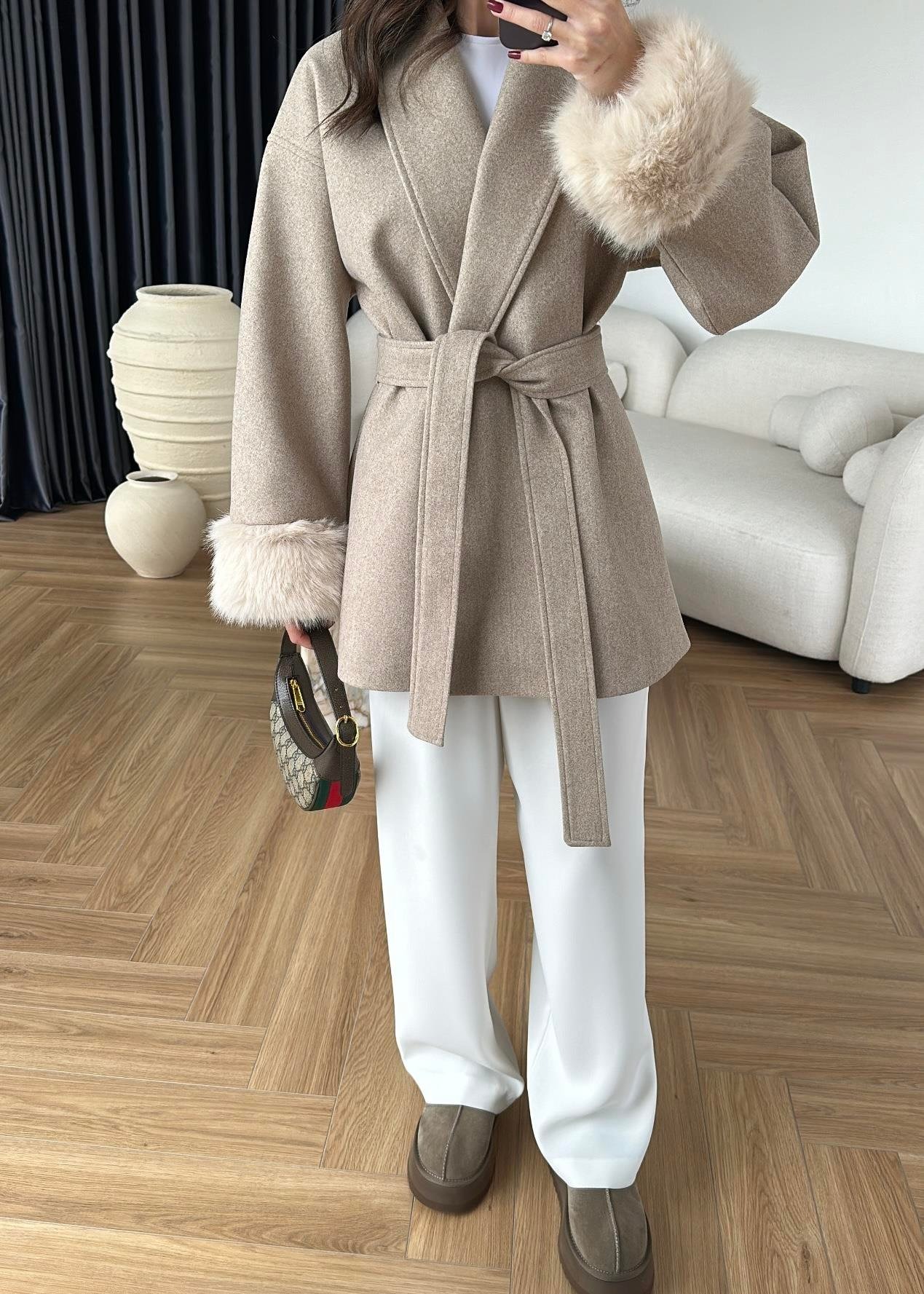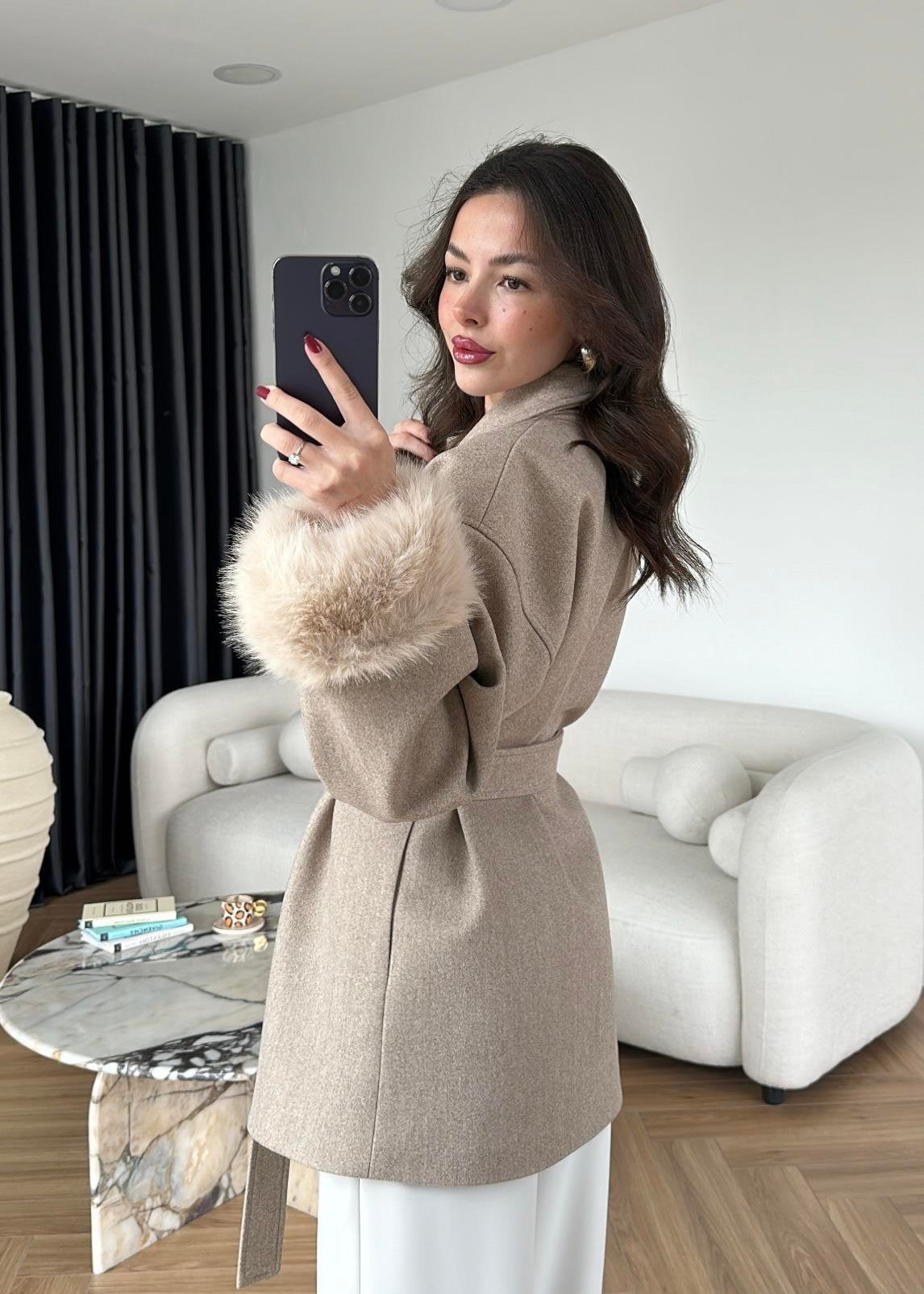 Kolları Kürklü Kaşe Kaban VİZON