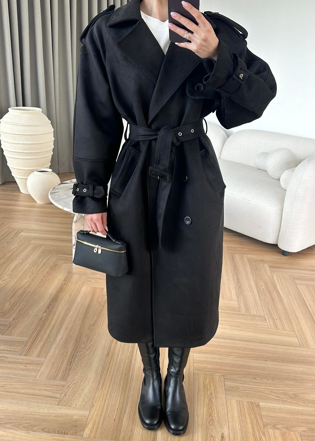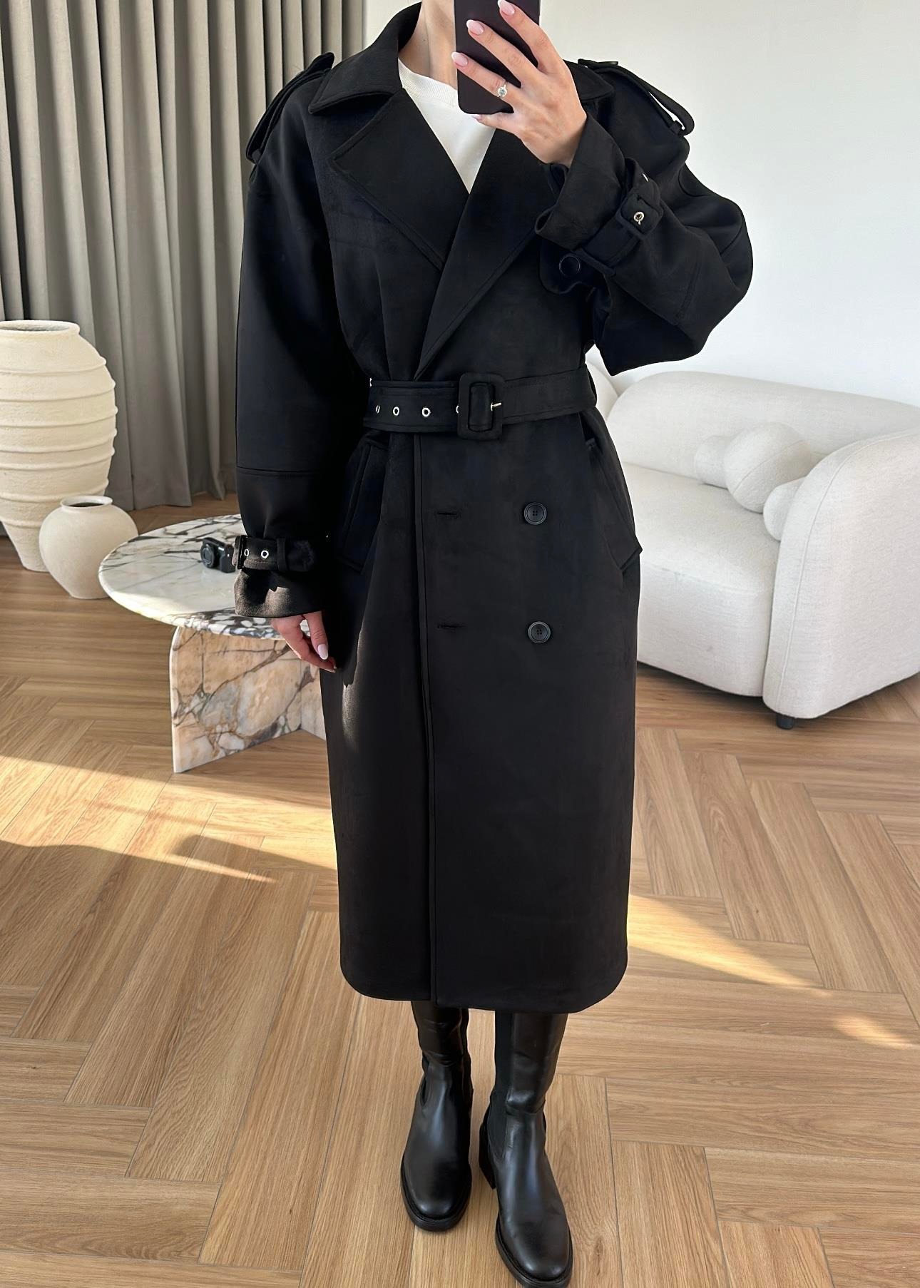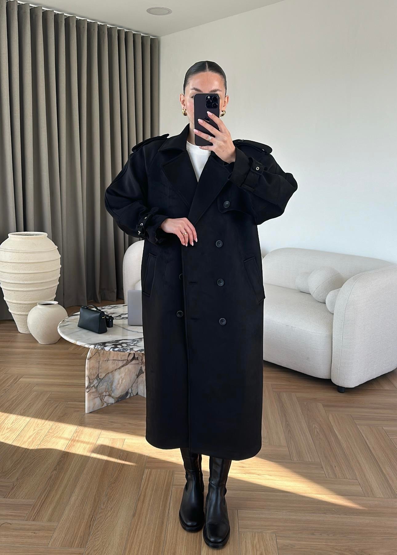 Vatkalı Süet Kaban SİYAH