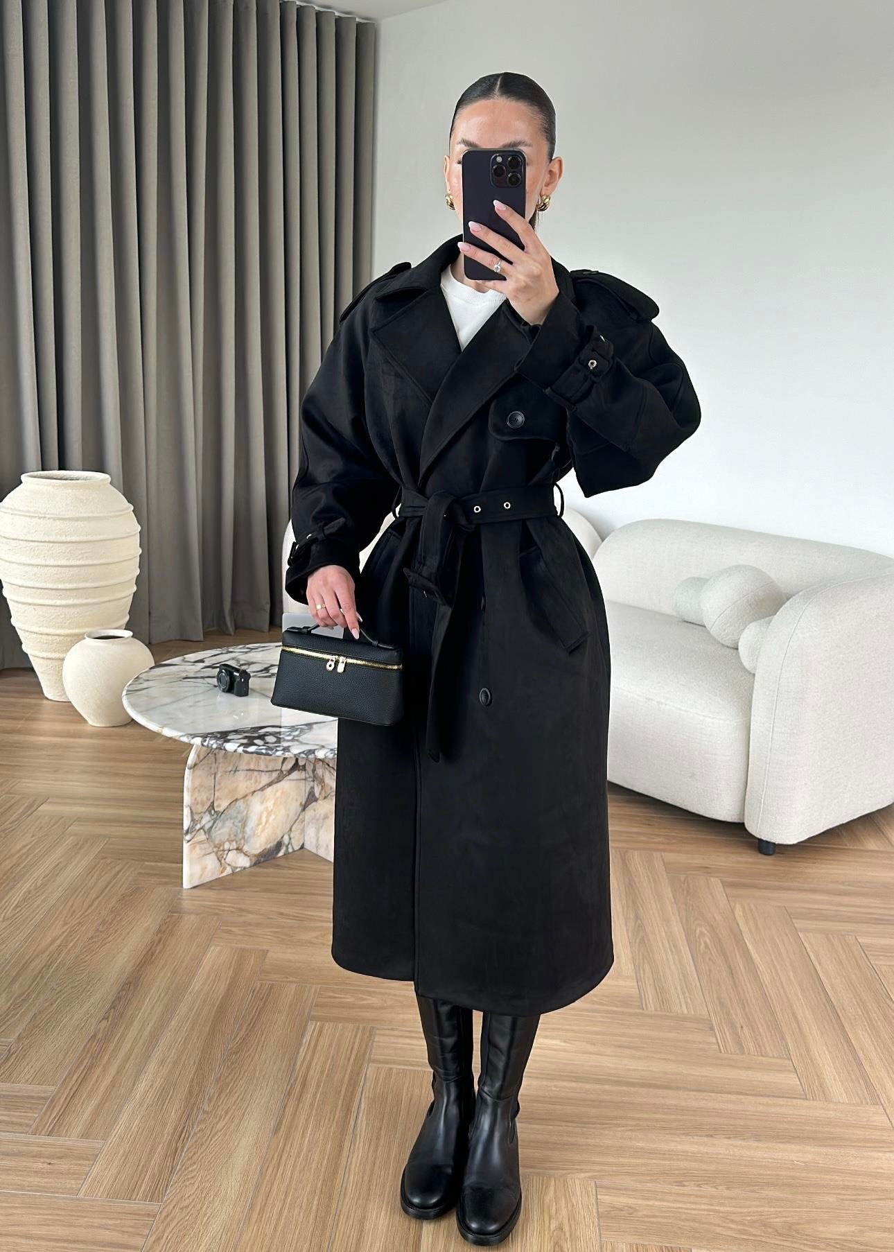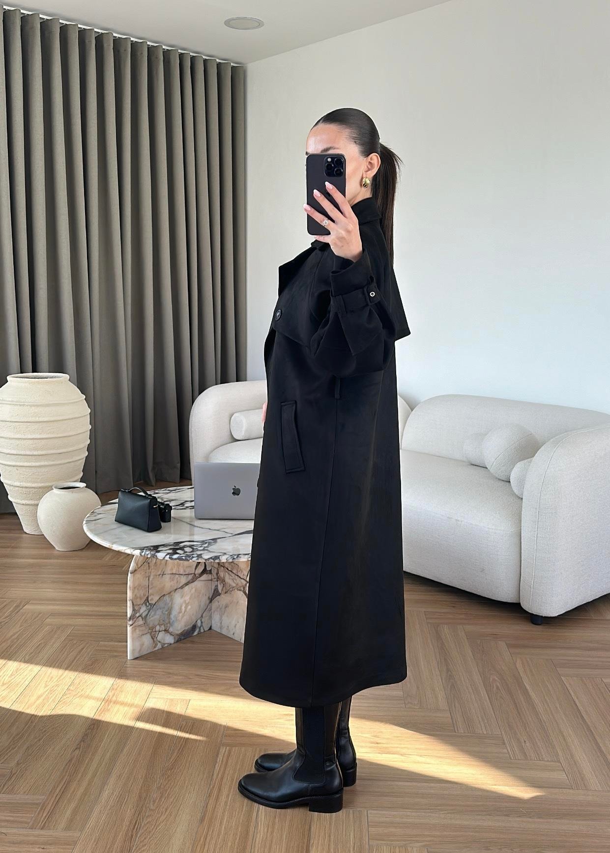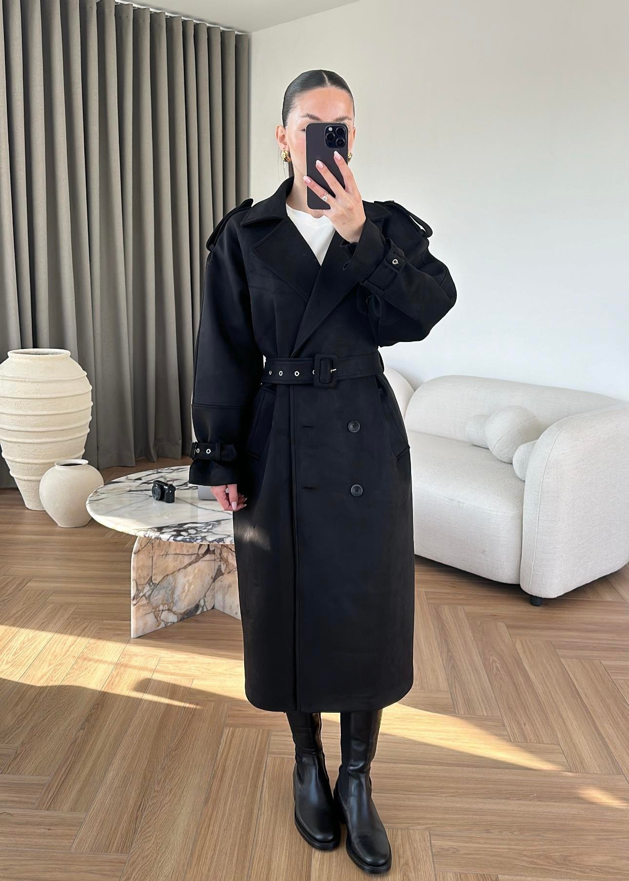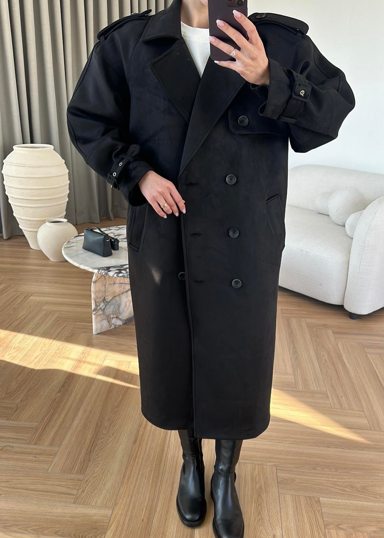 Vatkalı Süet Kaban SİYAH