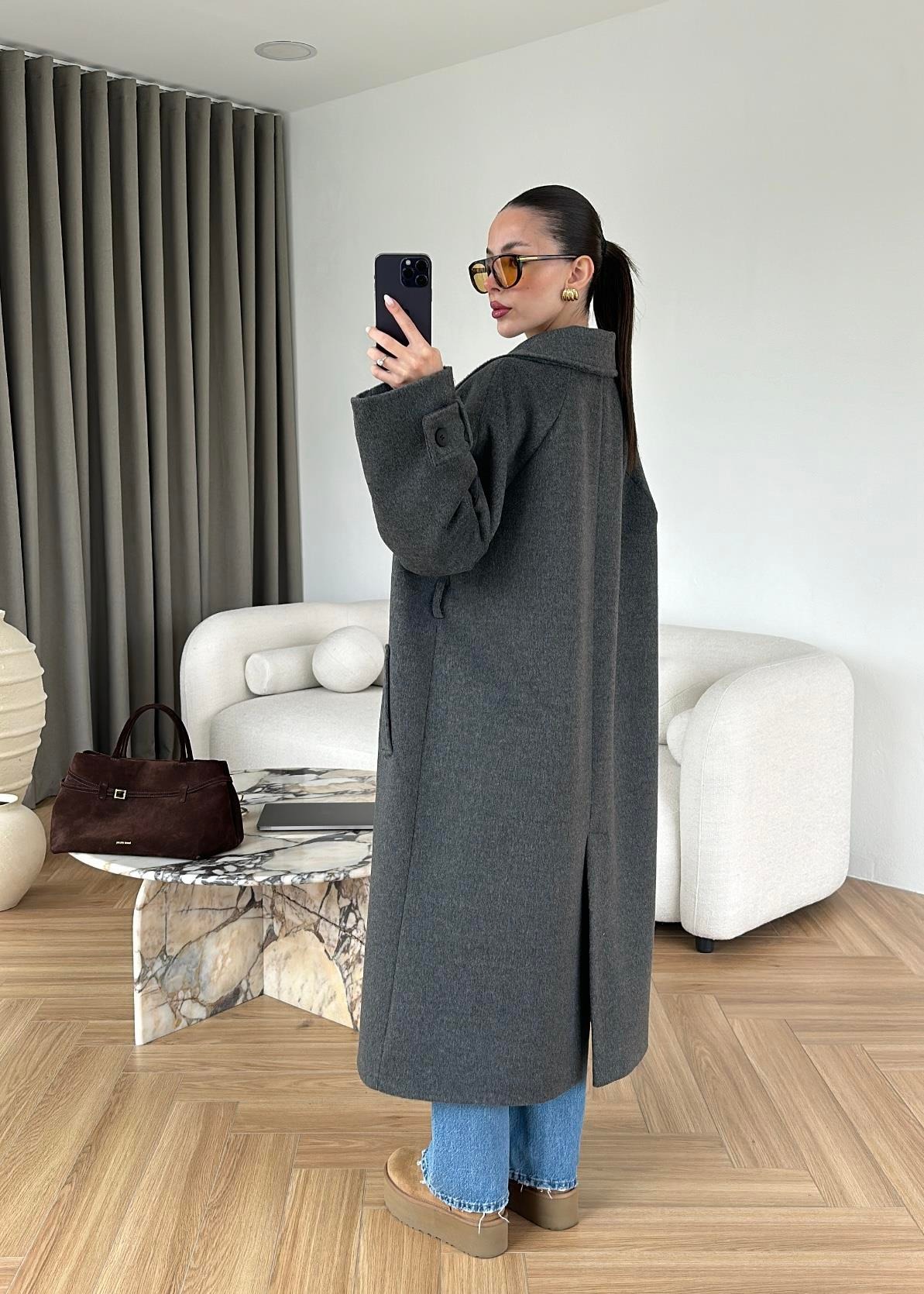 İki Düğmeli Kuşaklı Kaban ANTRASİT