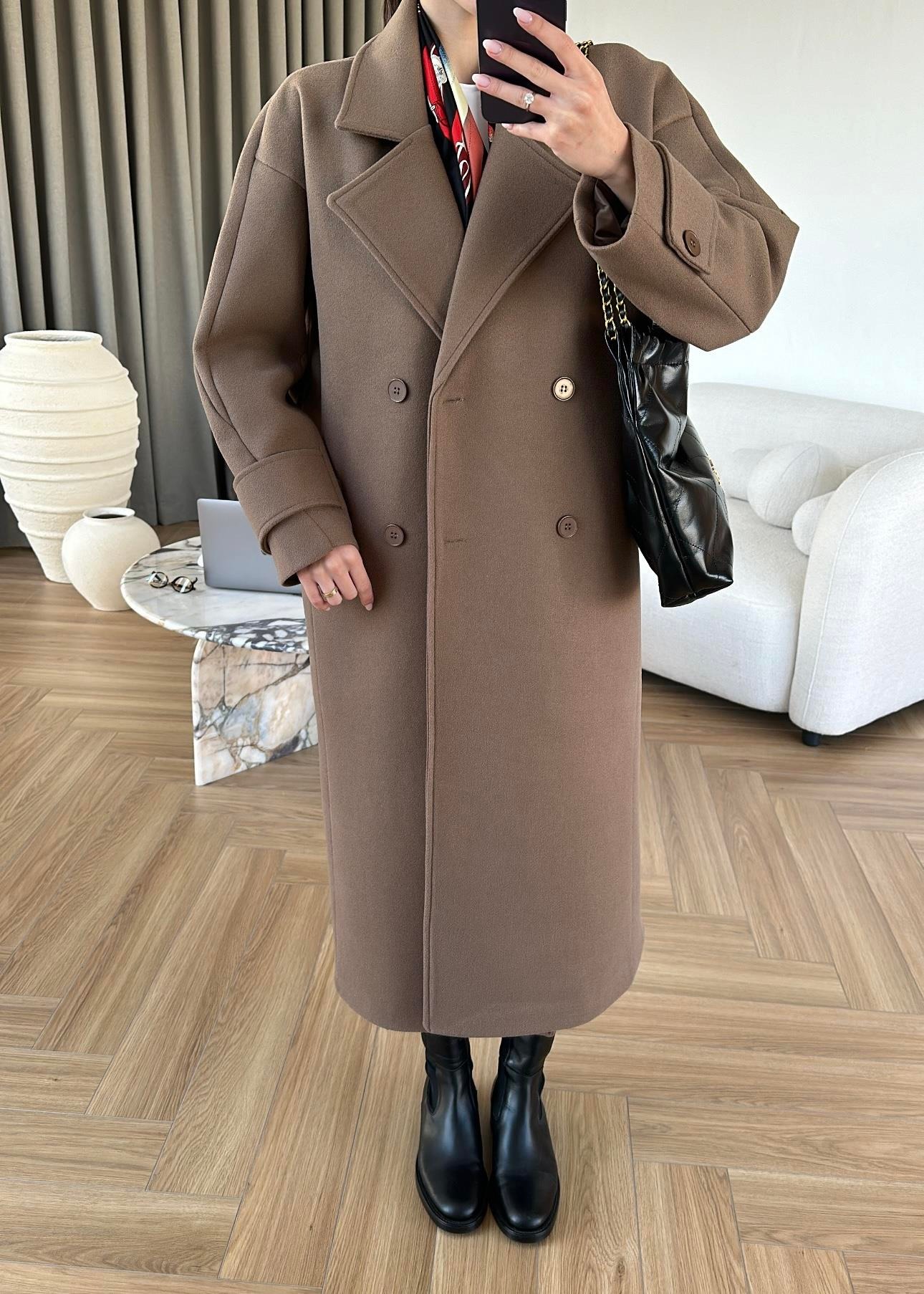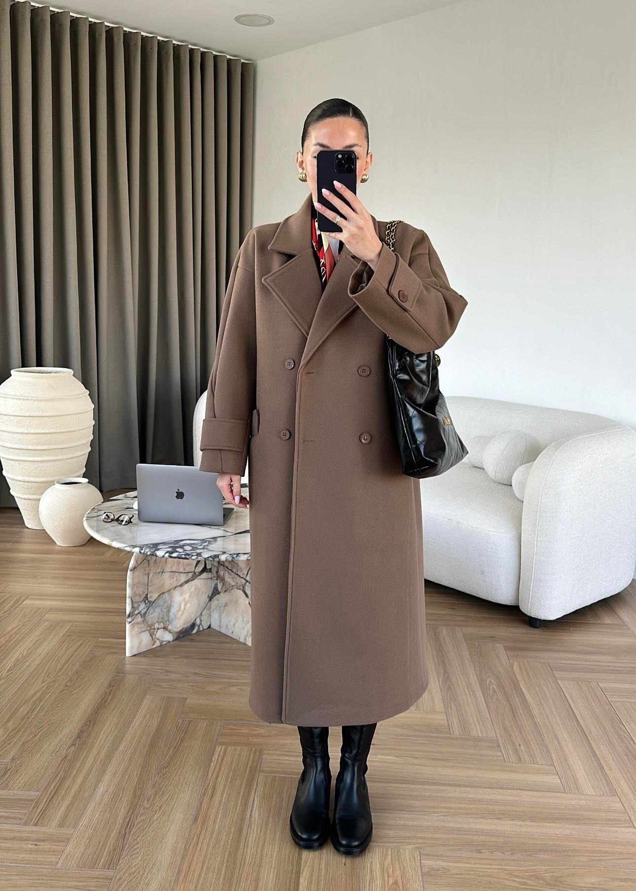İki Düğmeli Kuşaklı Kaban AÇIK KAHVE