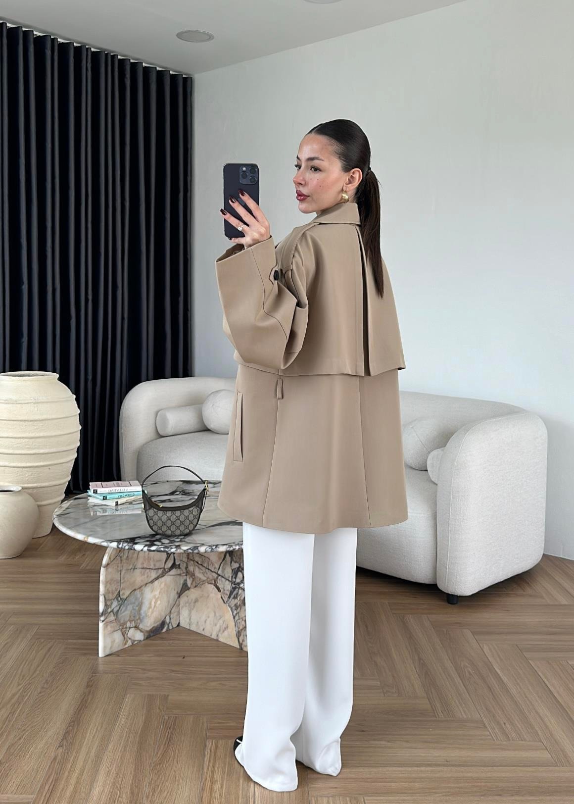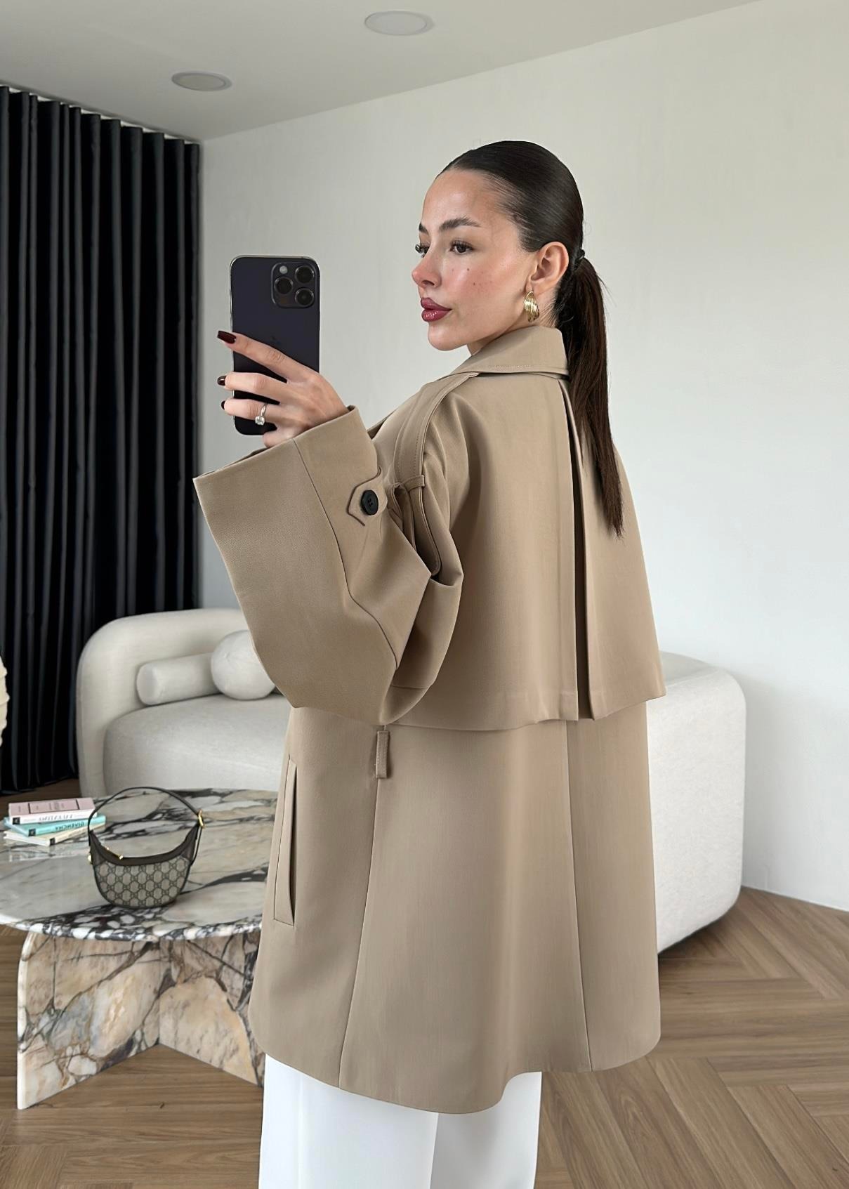Rüzgarlıklı Ara Boy Trençkot CAMEL